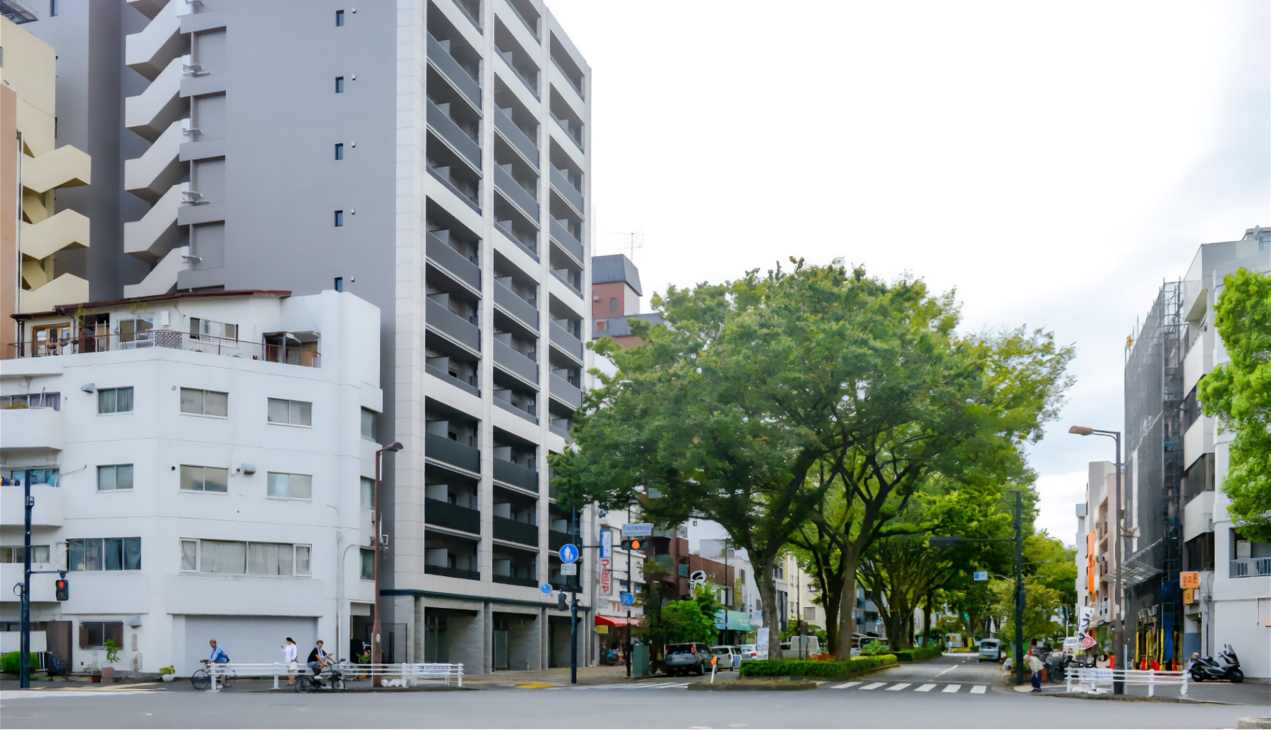 ホワイト&ダークトーンのシックな外観が目を引く賃貸マンションが誕生した。