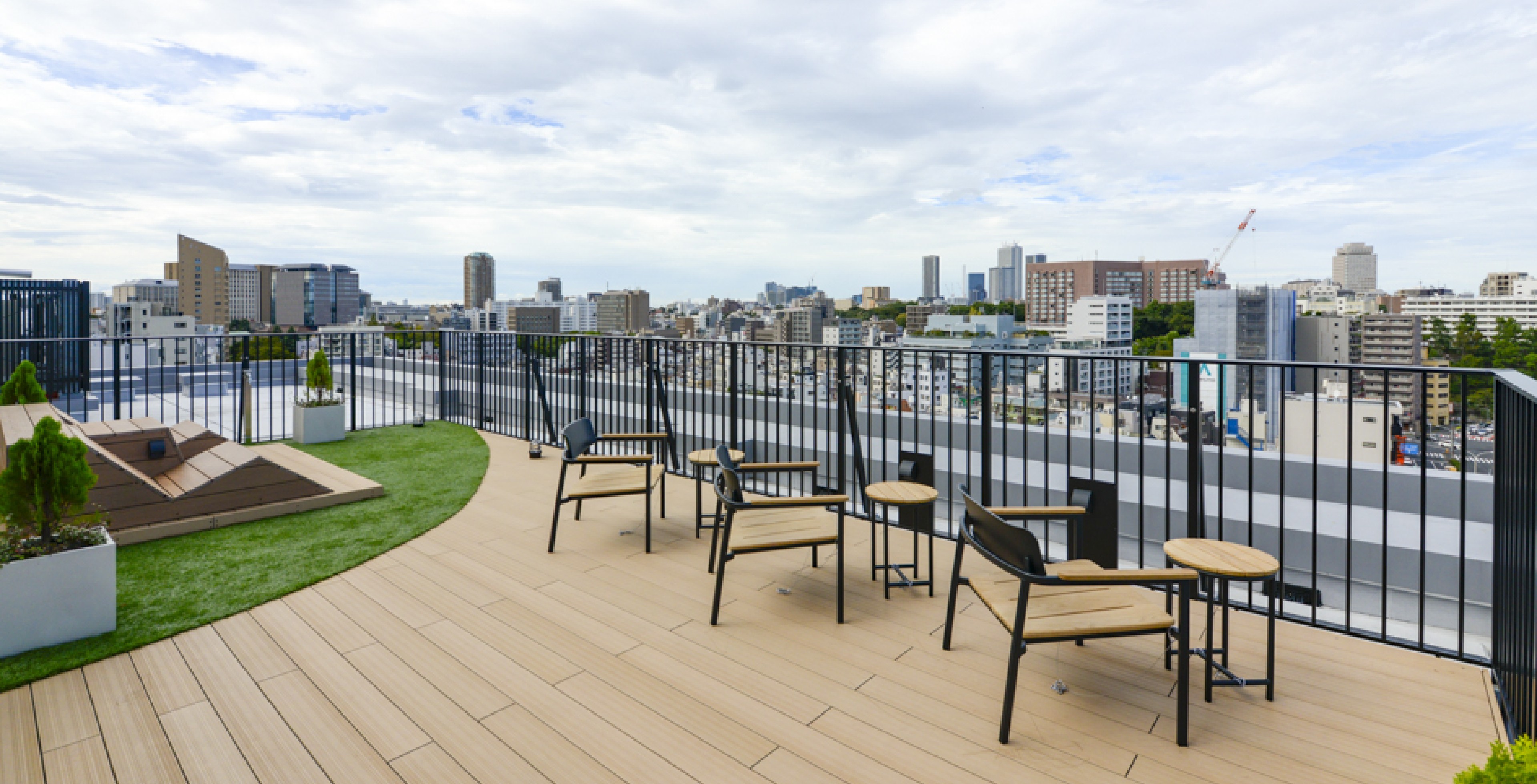 コンセプトに沿って、野見山は 、社内の技術担当者に加え、設計事務所や施工会社など協力会社と意見を出し合い、検討を進めていった。そのなかで出てきたのが、「コンセントを備えれば、仕事もできるなど使用用途の自由度が増すのではないか」「空間演出のため、スポットライトを設けよう」といったアイデアだった。また、奥井は奥井で屋上テラスには特別な思い入れがあり、テーブルやチェアといった家具類をコーディネイト会社の協力のもとで自らセレクト。かくして、物件の付加価値を高めるすばらしい空間が屋上に完成した。