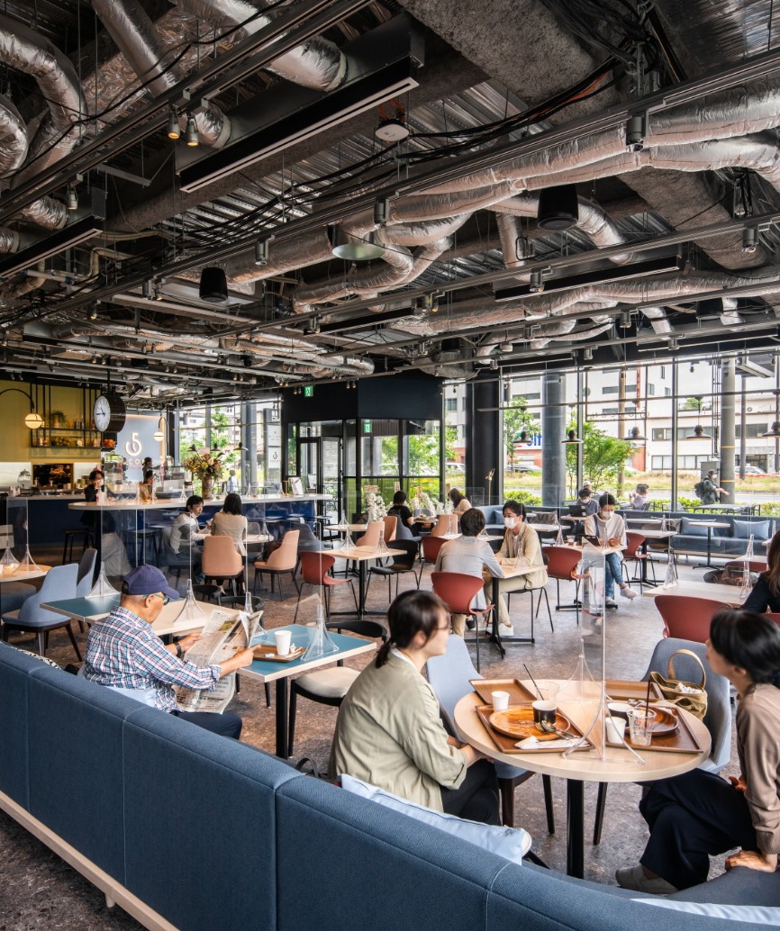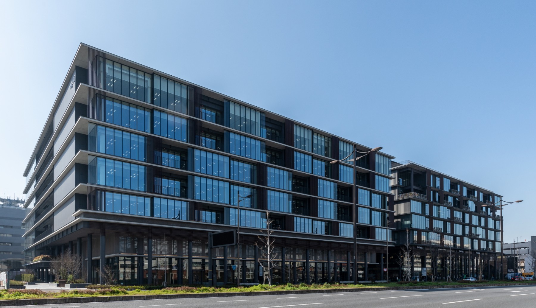 地区開発にあたっては、地区全体の将来の姿を描き、開発を進めてきた。直近の新棟開発としては、2021年に低層階を商業施設、上層階をオフィスとする構成のKRP10号館が竣工。京都の主要幹線道路である五条通に面し、隣接するKRP9号館と連続性あるデザインで、京都らしい景観を形成している。加えて、既存棟についても機能が低下している区画については大規模なリノベーションを行うなど、地区の魅力を維持向上するリニューアルも進めてきた。