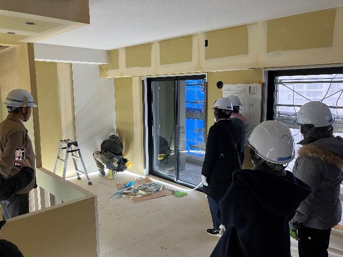 内装工事の流れに沿って、実際にマンション内をご見学頂きました。