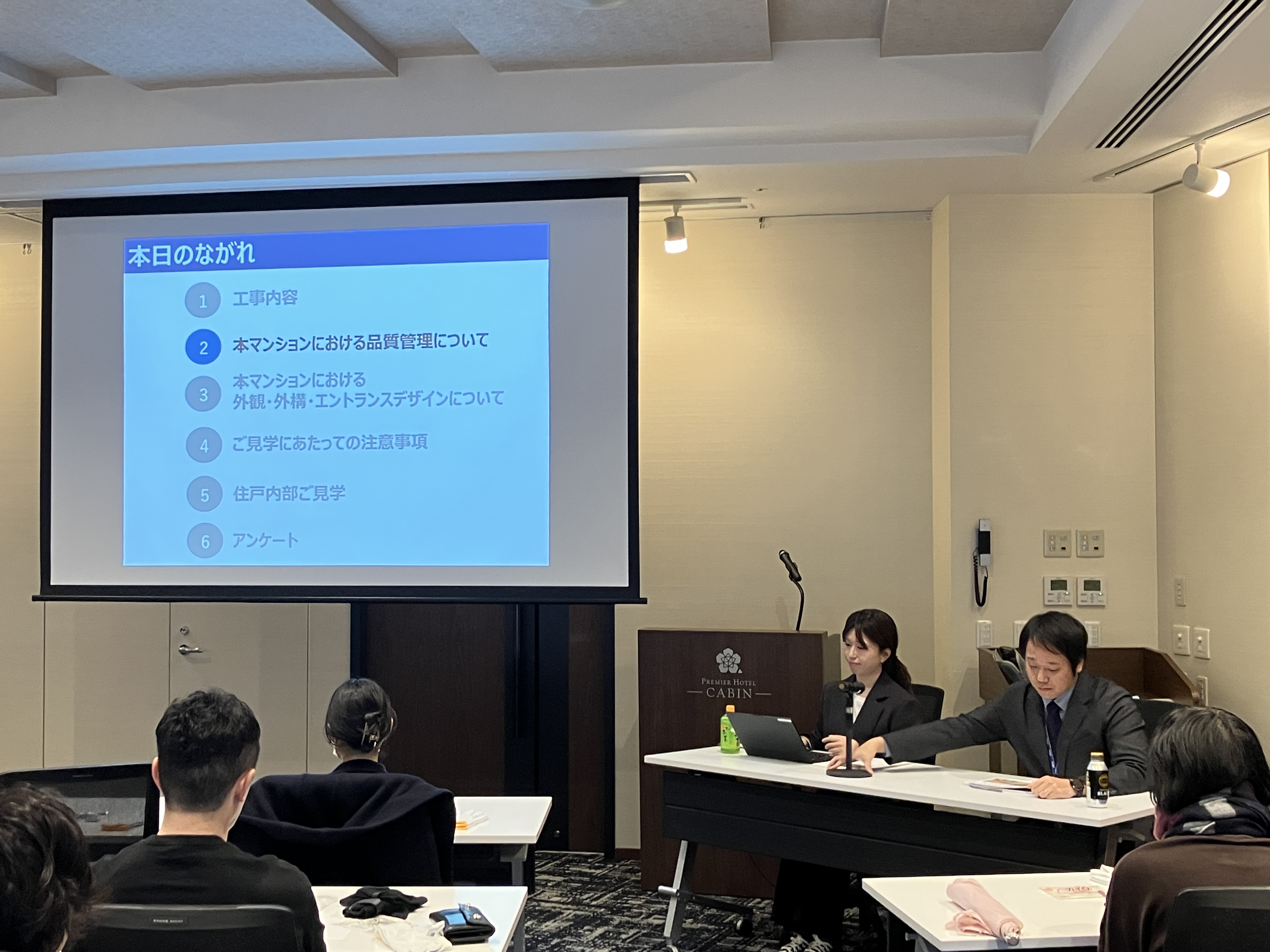 ご契約者様に説明会にてシーンズ南森町の物件紹介並びに建設現場見学会の流れについて理解を深めていただきました。